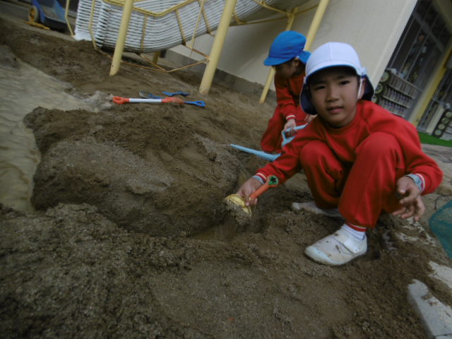 砂場でなんだか賑やかな声が聞こえてきました。