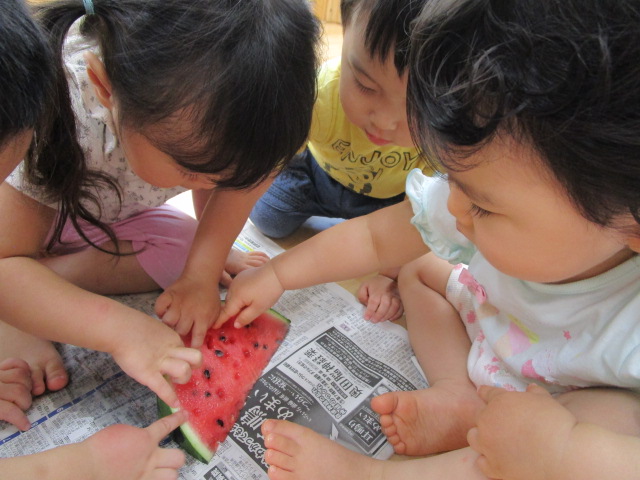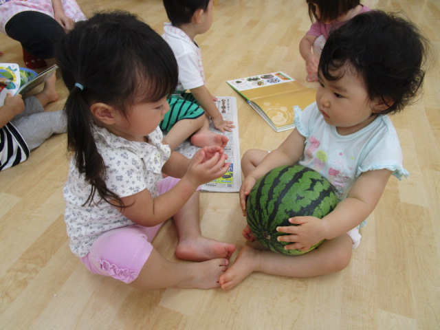 はいどうぞ。 上手に種を取り出して先生に渡してくれました。
