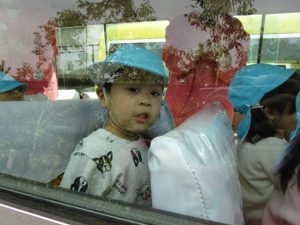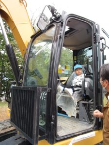 乗るか? え?乗れるの? ちょうど飯野ひかり幼稚園の園長が側にいてくれたので補助に入ってくれました。