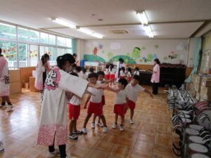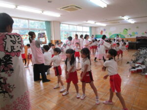 中学校と幼稚園の共通の一つ。ソーラン節をお互いに見せ合っこしました。