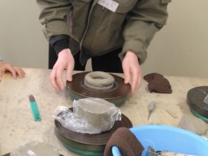 「ドーナツみたい!!」「おいしそうだよね」など、思い思いのイメージをもってどんな形にしようか考えていました。