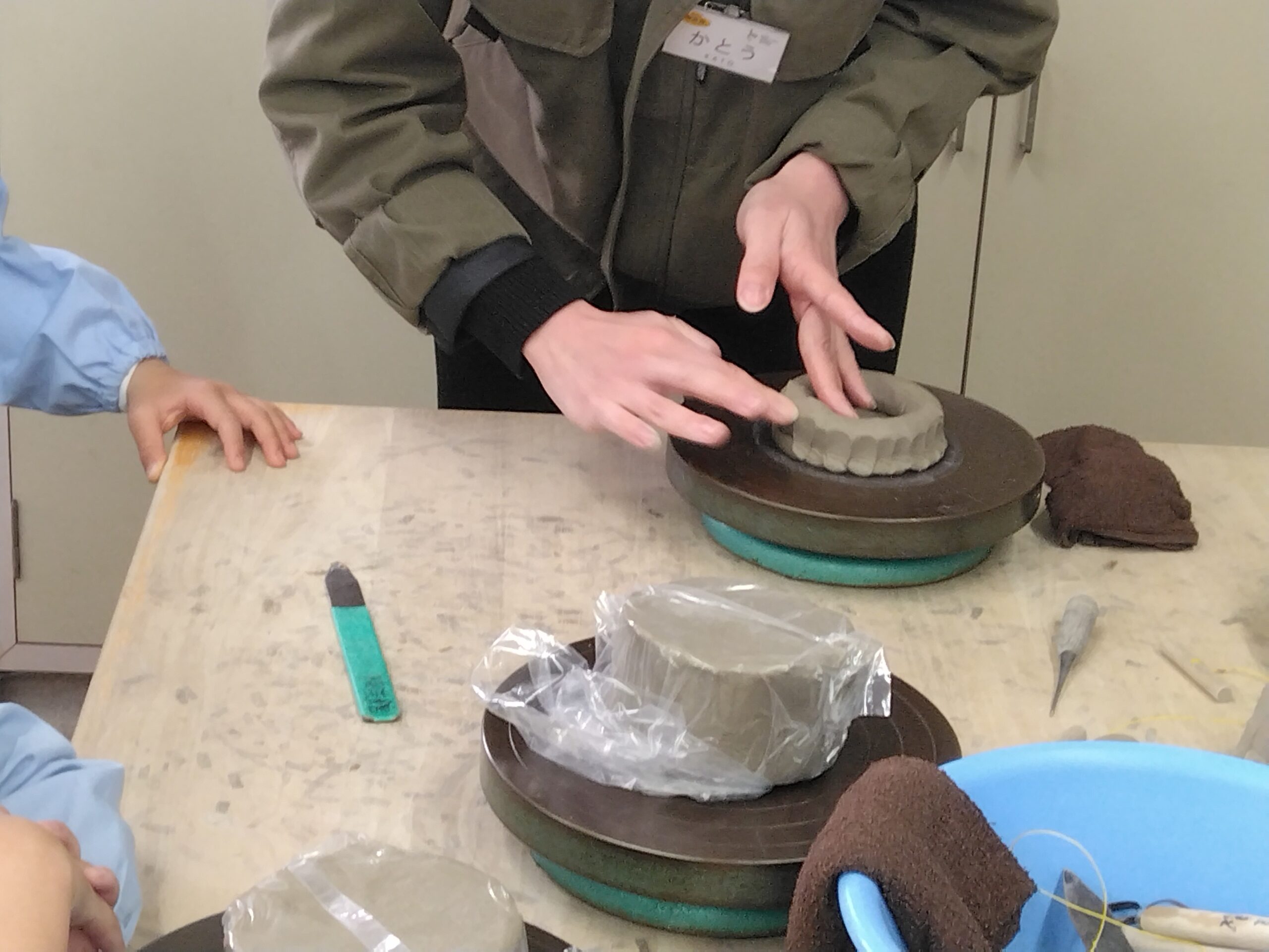 「ドーナツみたい!!」「おいしそうだよね」など、思い思いのイメージをもってどんな形にしようか考えていました。